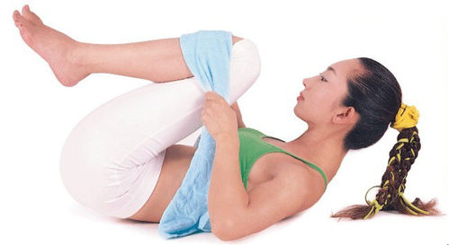 3、拉高拉近臀部。腹部吸氣,雙手拉毛巾把小腿抬高,靠近臀部,維持10秒,吐氣后慢慢將腳放下,換腳繼續(xù)練習(xí)。